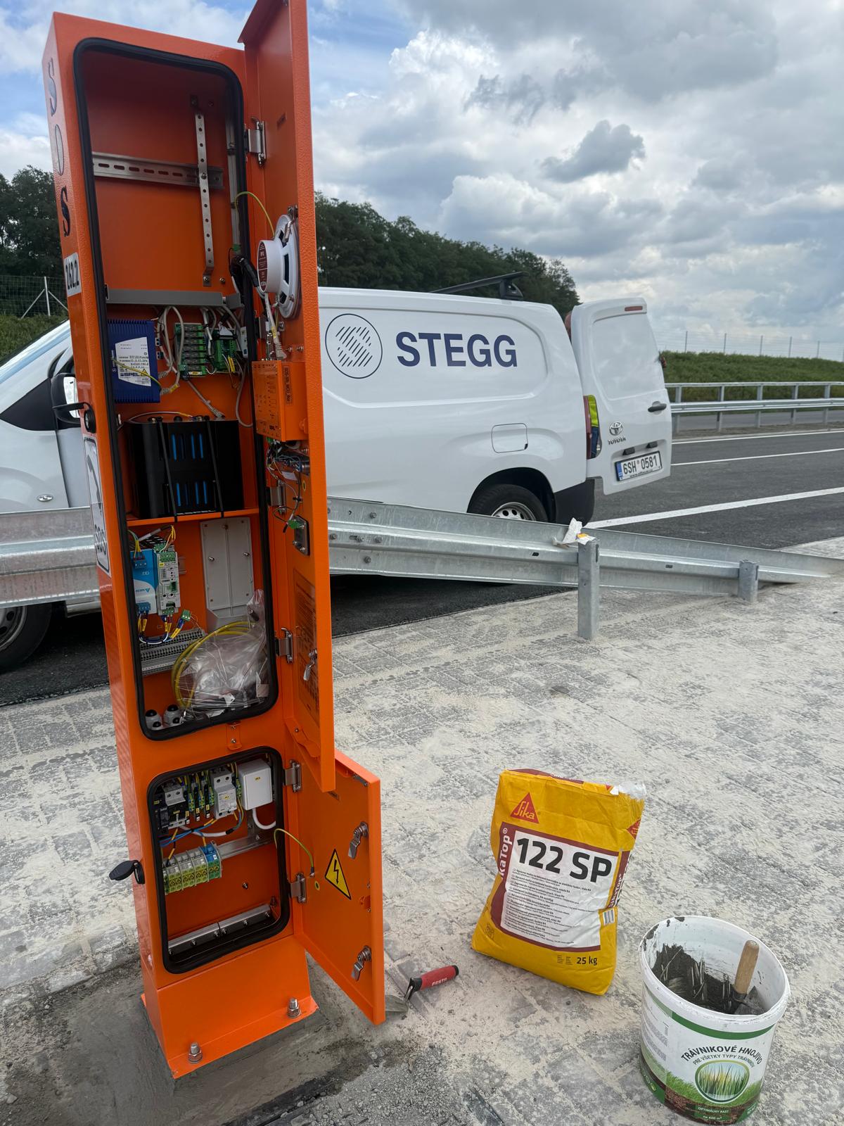 V úseku dálnice D35 Křelov–Slavonín jsme realizovali instalaci moderních SOS hlásek v rámci systému DIS SOS, který slouží ke zvýšení bezpečnosti a rychlé komunikaci v případě nouzových situací.